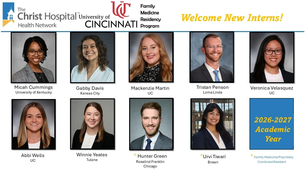 We are excited to introduce you to our full-spectrum family medicine residency. Whether you are looking to work with urban underserved, become a health advocate, gain skills to provide care in global settings or pursue a career in academic medicine, the University of Cincinnati/Christ Hospital Family Medicine Residency could be the next step in your medical training.